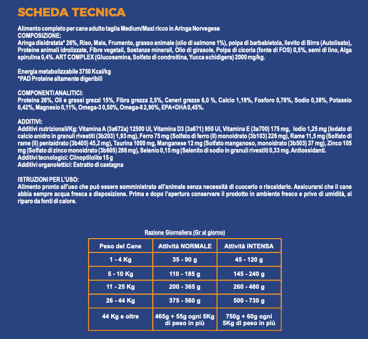 La linea Adult Gold MONOPROTEICO ARINGA NORVEGESE è un alimento completo e bilanciato per cani adulti in mantenimento di tutte le razze di taglia media e grande. Studiato per le esigenze specifiche degli allevatori per un uso tecnico e professionale.